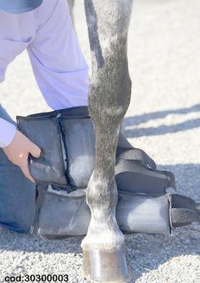 FÁCIL APLICACIÓN, INCLUYE DESDE PARTE DE ABAJO DE RODILLA, INCLUYENDO: TENDONES, NUDOS, CUARTILLAS. TAMBIÉN PUEDE SER UTILIZADO EN PATAS, REDUCE LA INFLAMACIÓN, DURACIÓN APROXIMADA 2 HRS, DE COMPRESIÓN UNIFORME Y SEGURA, DISEÑADA CON MATERIALES ESPECIALES QUE SE AMOLDAN Y MANTIENEN LA TEMPERATURA FRÍA EVITANDO QUEMAR AL CABALLO, FUERTES VELCROS ASEGURANDO LA FIJACIÓN Y FIRMEZA PARA OBTENER UNA ÓPTIMA APLICACIÓN, SACHET REUTILIZABLE DEL FREEZER AL CABALLO, TAMBIÉN SE PUEDE UTILIZAR EN CALIENTE EN EL MICROONDA.
