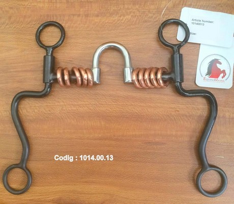 FRENO TRAINING CORRECTION DE 4 GOZNES ARTICULADO DE ACERO Y ANILLOS DE COBRE EN BOCADO.MEDIDAS 5" Y LARGO PATAS 20cm. PESO: 410 GRAMOS.